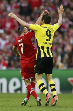 Trochę nieoczekiwanie od 1. minuty do ataków ruszyła Borussia. Dobrze radzili sobie Piszczek i Błaszczykowski, a ze stoperami mocno walczył Lewandowski.