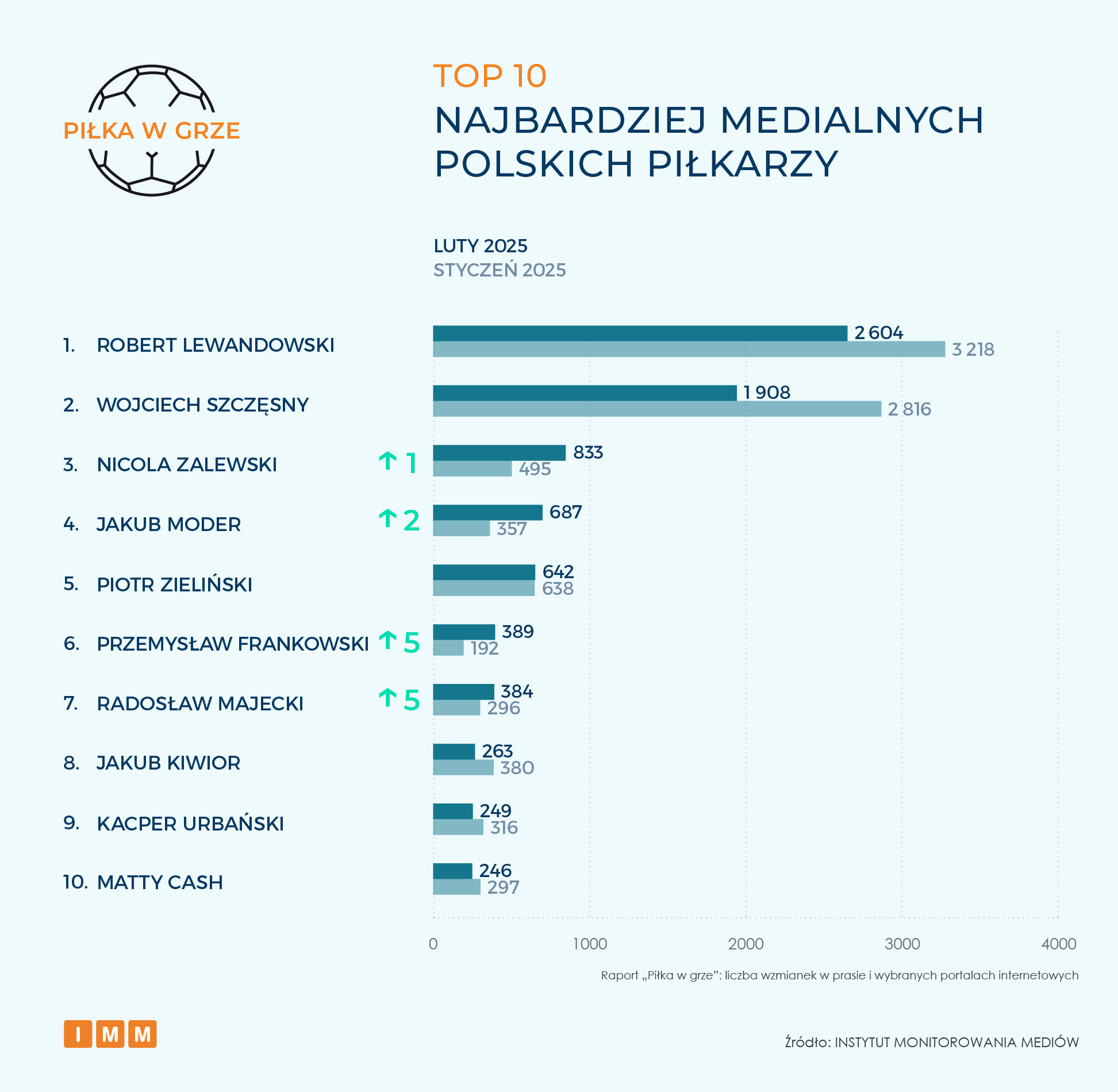 Instytut Monitorowania Mediów zamieścił kolejny raport z cyklu "Piłka w grze". Poznaliśmy najbardziej medialnych polskich piłkarzy w ubiegłym miesiącu. Poniżej pełny raport.