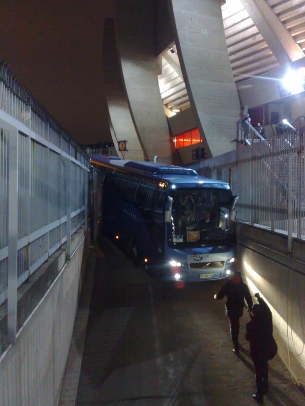 Pojazd stracił kilka okien, ale żaden piłkarz nie został ranny.